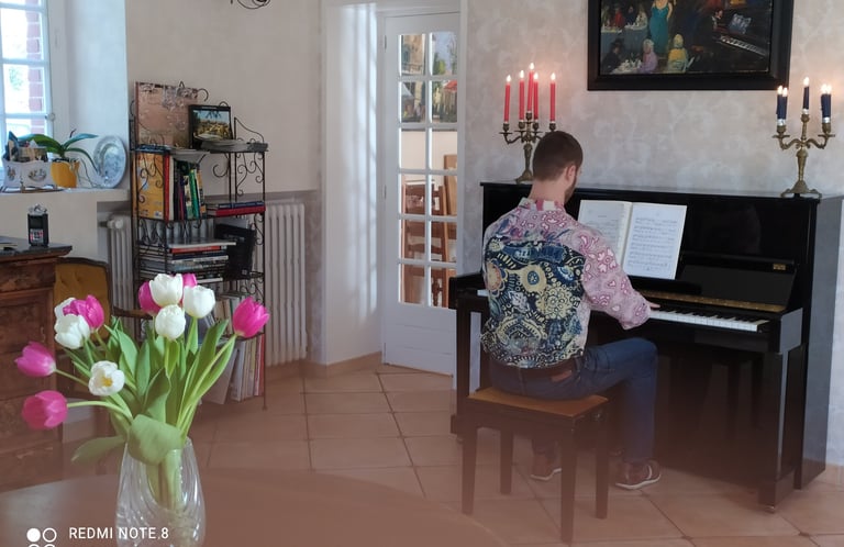 Je détient un piano électrique facilement transportable (nécessitant une alimentation électrique et aussi des enceintes pour les concert extérieurs) mais je peux évidemment jouer sur un piano déjà sur place..